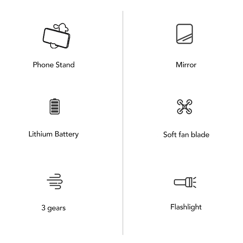F15 Multifunctional Fan with Torch, Mirror, Phone Stand 3 Speed